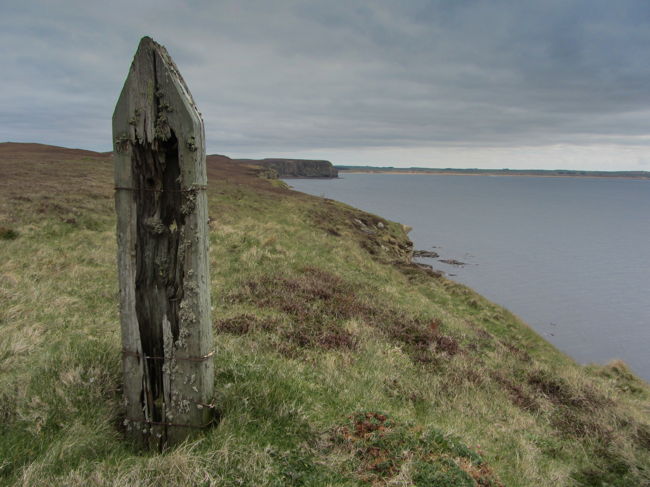 The following day I took a shorter walk, again along the cliffs, but from Thurso to Castletown (Walking World id=4336). Similar to the Dunnet Head walk this was again mainly on sheep tracks and passed WWII tank traps and gun emplacements. Of interest also is evidence of the Caithness flagstone industry. The flat layers of exposed rock are ideal for use as flagstones for floors and are used also as field walls and roof tiles. Castletown has a flagstone museum showing how James Traill began the industry in 1825. When I reached Murkle beach the sun was out and I relaxed in the dunes for a while before breaking off due south to reach the road and a bus back to Thurso.