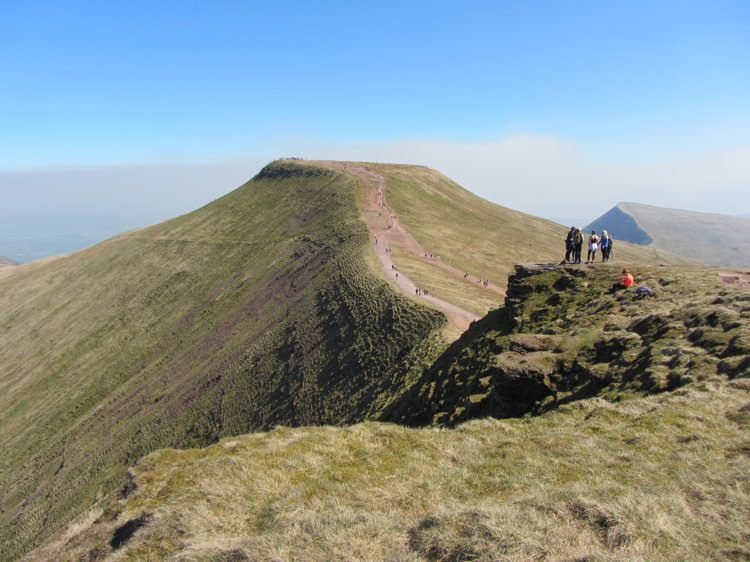 Tim and John returning from Pen Y Fan (top of the ridge in the background) to Corn Du.
